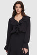 The chic V-neckline, ruffled collar, and tie-front design offer a feminine flair and create an elegant style. Let your neckline look more slender and graceful.