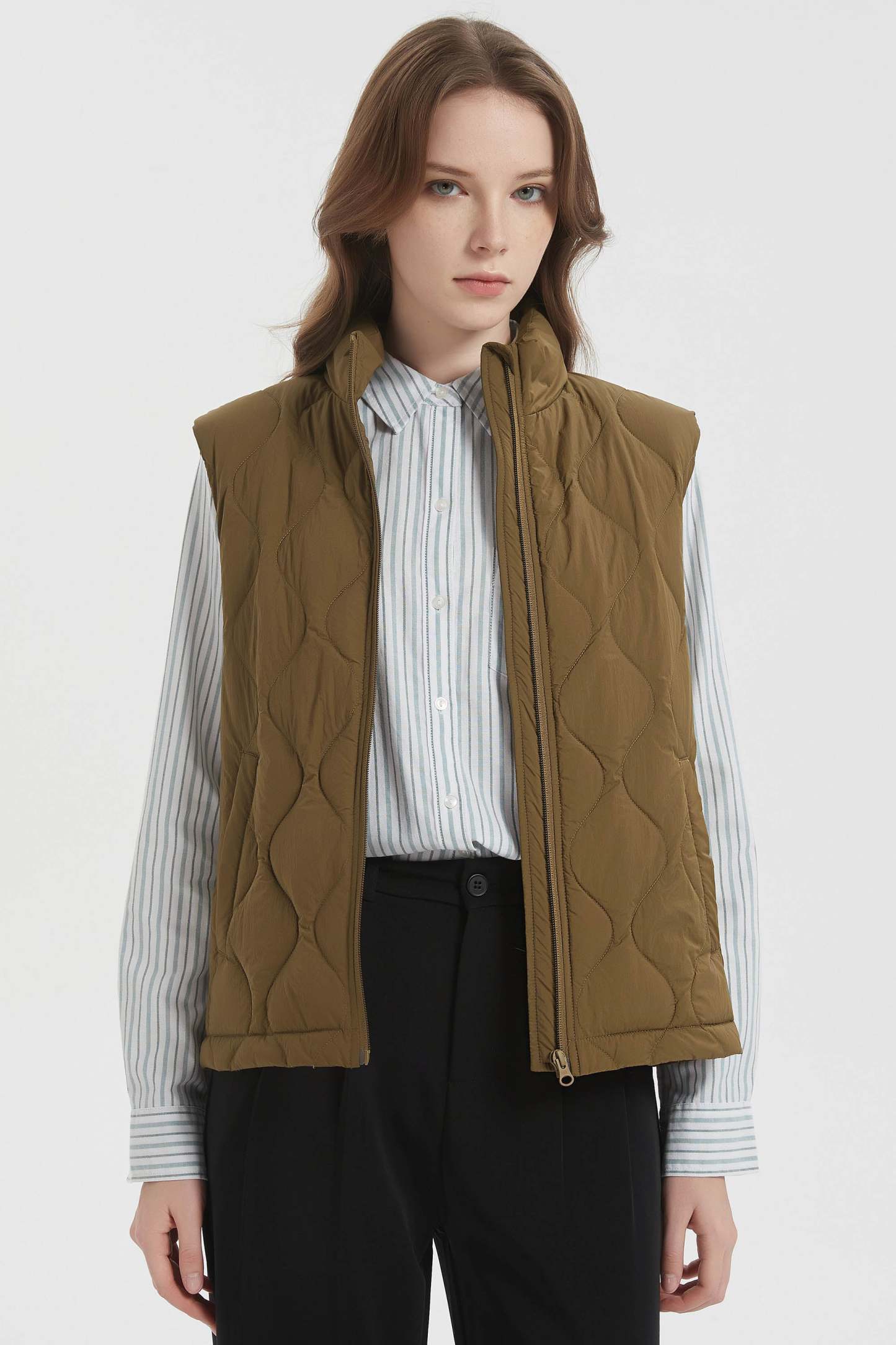 Down Insulation: The women's puffer vest features 90% duck down with 700+ fill power, providing superior warmth and insulation while maintaining a sleek silhouette.