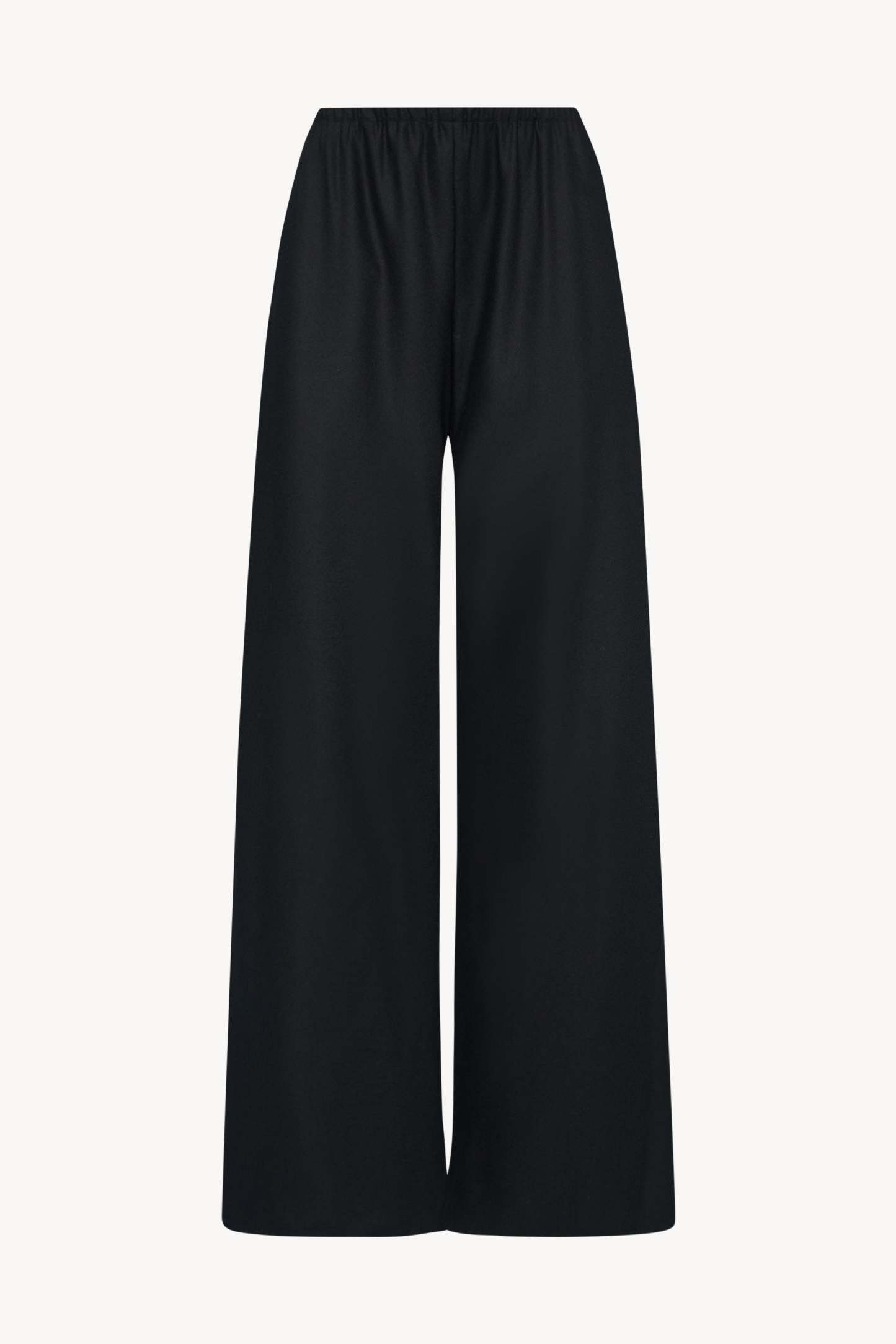 Bias-cut pant in British wool flannel with slim gathered elastic waistband and wide leg.