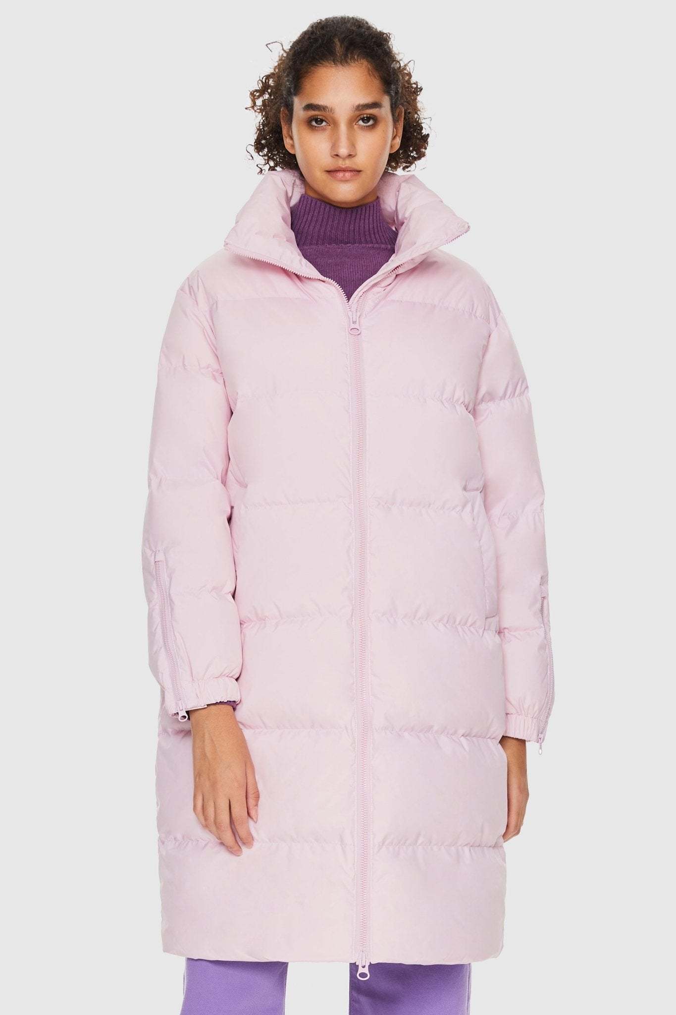 With 700+ down insulation and a 90% duck down composition, this High Collar Long-sleeve Puffer Jacket offer unparalleled warmth.
