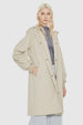 This women's belted trench coat features a buckle waist belt that not only maintains a clean and minimalist appearance but also serves the practical purpose of allowing the wearer to adjust the fit for comfort and style.