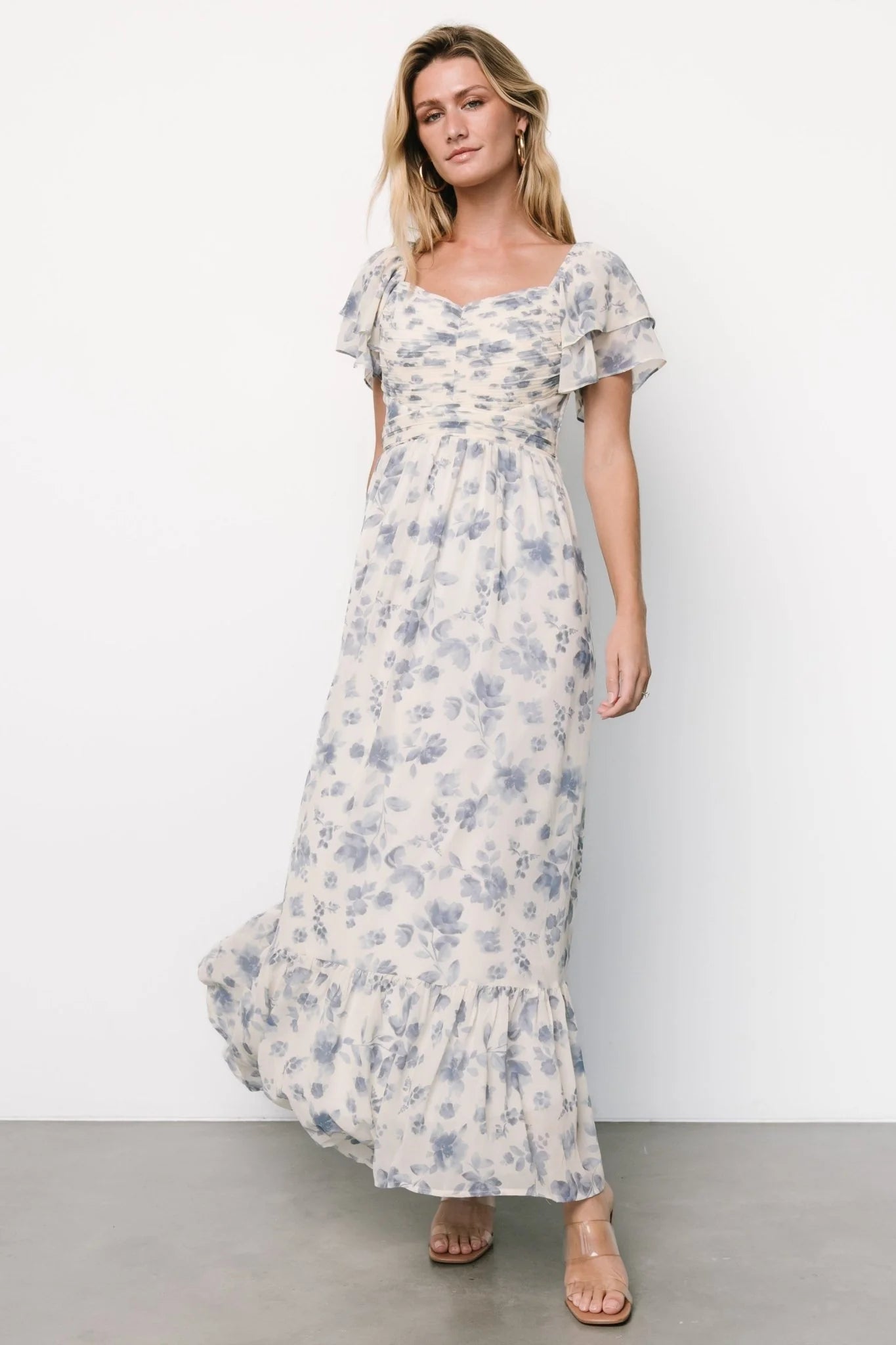 Juliana Pleated Top Dress | Ivory + Blue Floral