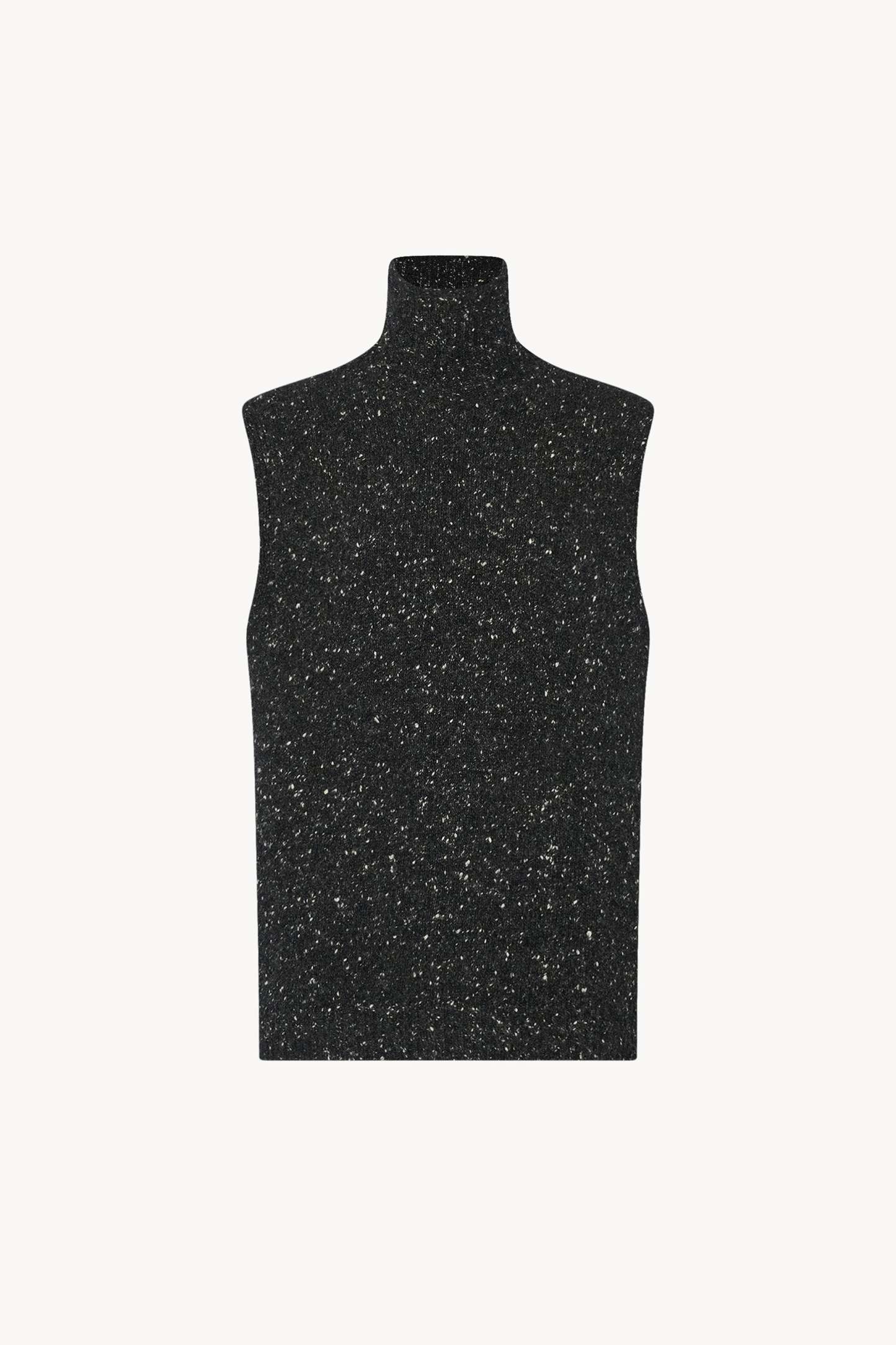 Sleeveless turtleneck sweater in speckled midweight cashmere with straight fit and seamless construction.