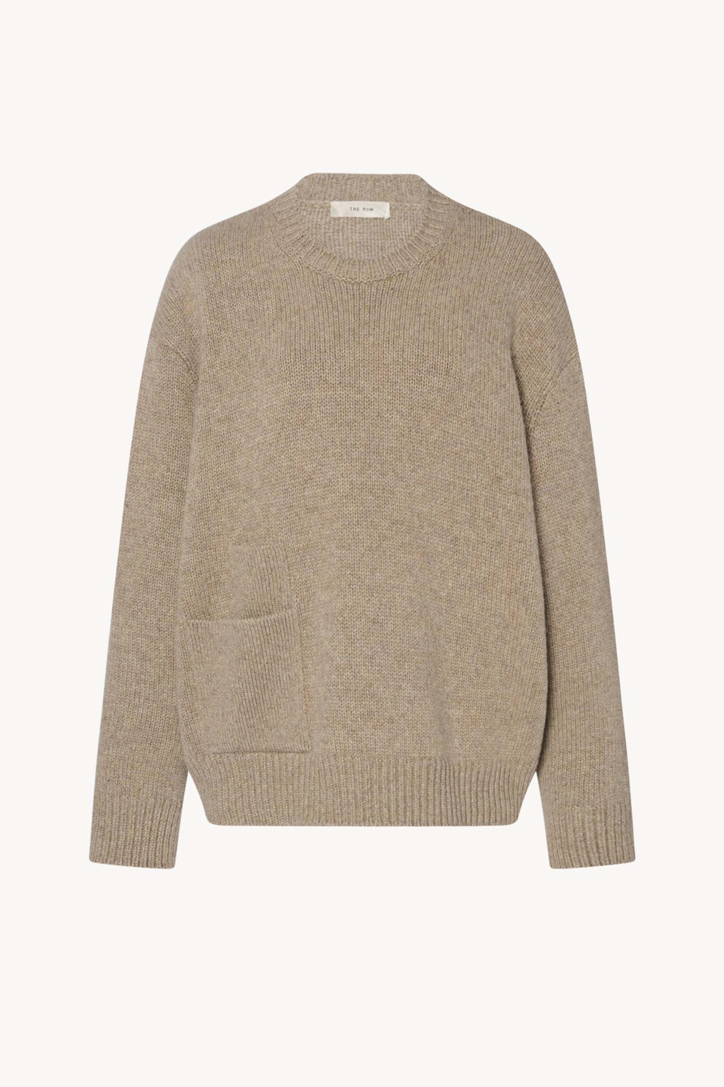 Slightly cropped crewneck sweater in soft midweight cashmere with oversized fit, left front pockets, and ribbed neckline, cuffs, and hem.