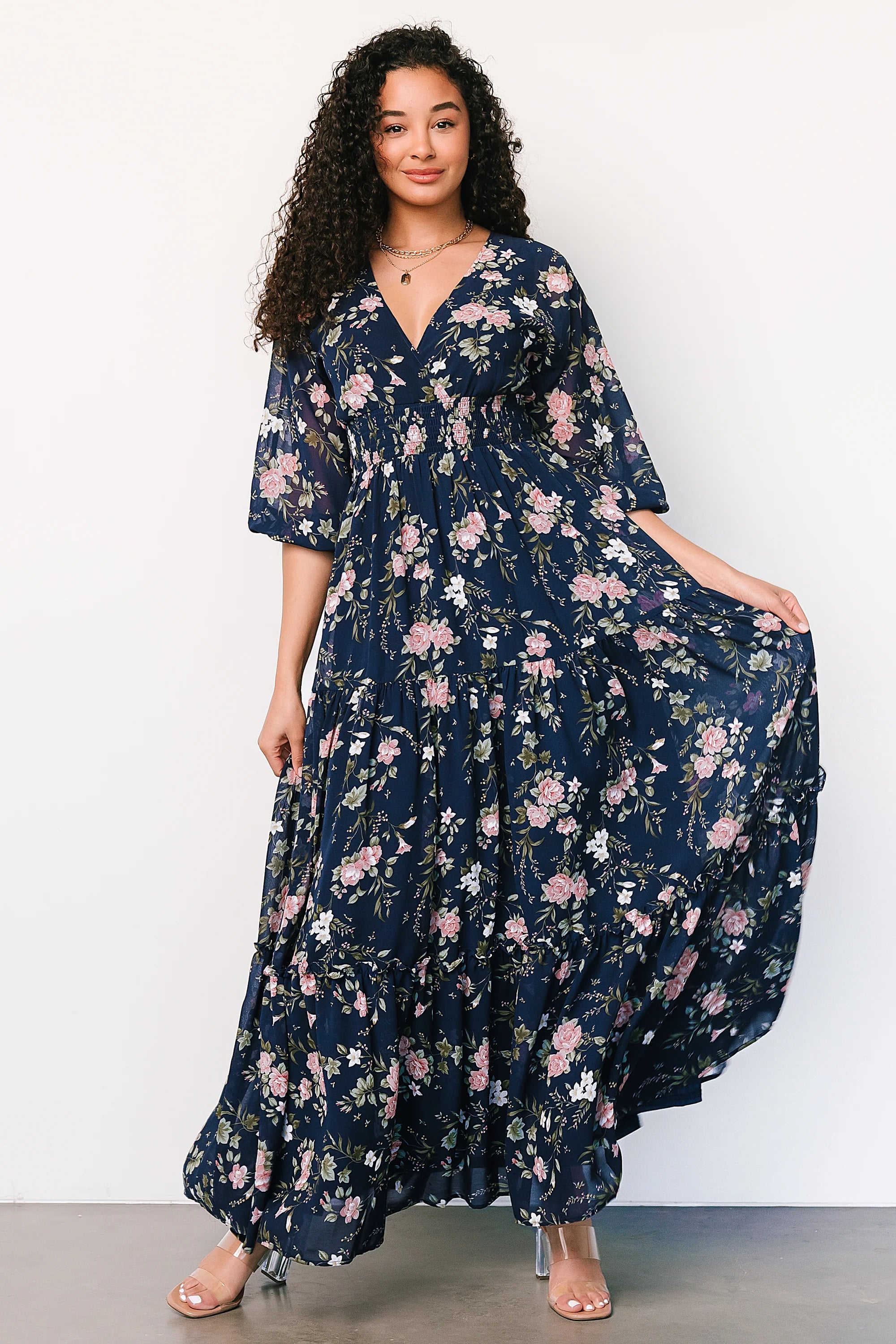 Sawyer Tiered Maxi Dress | Navy + Pink