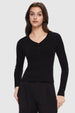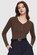 The 3-button closure at the V-neck allows you to customize the neckline, revealing more or less of your collarbone to suit your style in this women's long sleeve top.
